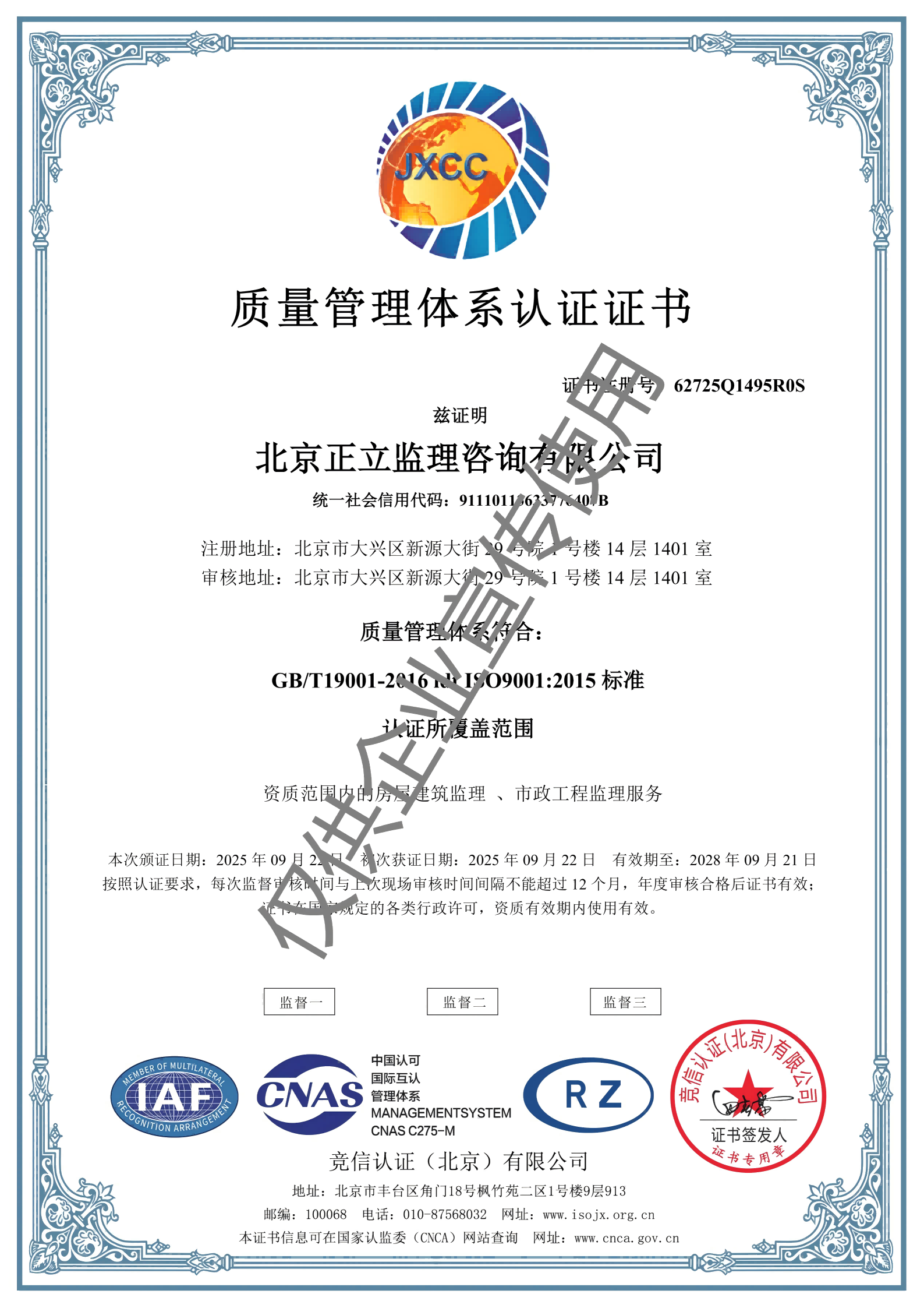 北京正立監(jiān)理咨詢(xún)有限公司成立于1998年7月1日,其前身隸屬于北京市公路質(zhì)量監(jiān)理站。具有獨(dú)立法人資格,是獨(dú)立核算、自負(fù)盈虧的經(jīng)濟(jì)實(shí)體。企業(yè)經(jīng)營(yíng)范圍:公路工程監(jiān)理、交通工程監(jiān)理、市政公用工程建設(shè)監(jiān)理、工業(yè)與民用建筑工程監(jiān)理、工程監(jiān)理咨詢(xún)、技術(shù)咨詢(xún)、技術(shù)培訓(xùn)等。